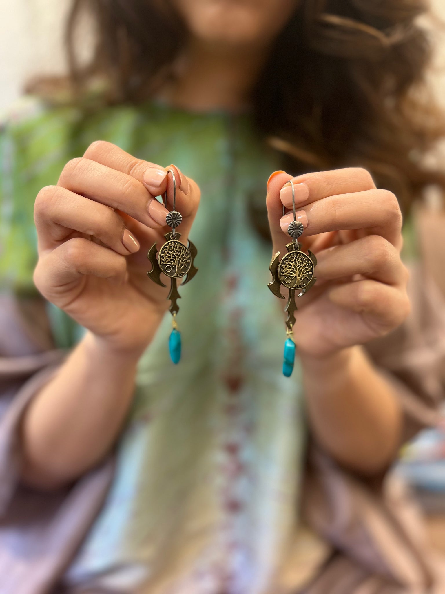 Here we have a metal motif with a turquoise bead.