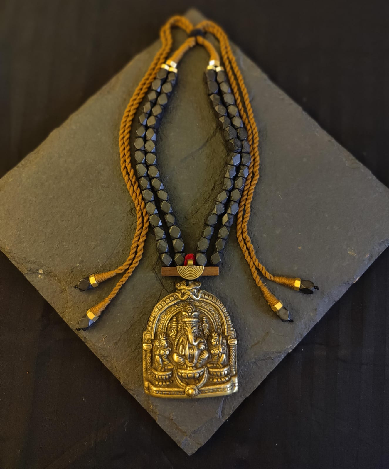 Shop this beautiful brass Lord Ganesh with Riddhi Siddhi necklace for the upcoming festivities.